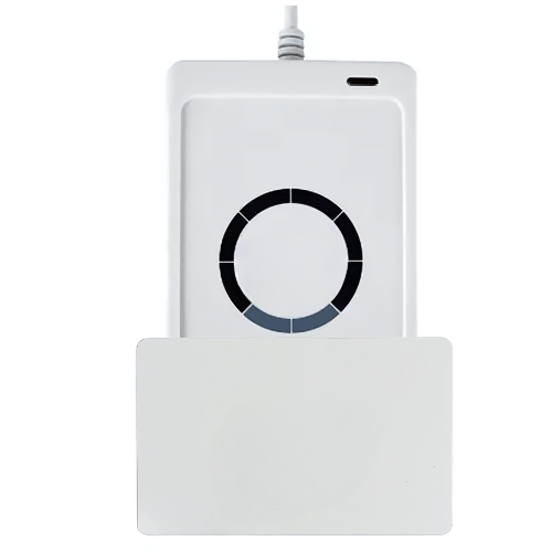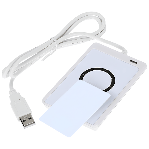 White RFID NFC Reader Smart Card USB Communication ISO14443A or B ACR122U HF RIFD Reader The ACR122U is a popular NFC reader or writer device manufactured by Advanced Card Systems Ltd.