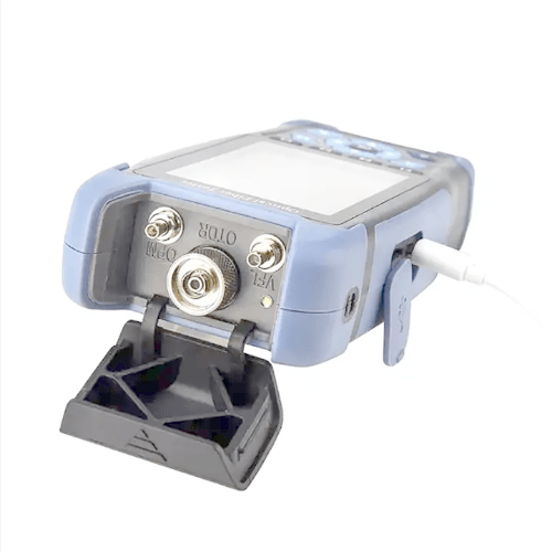 Versatile Fiber Optic Tester with 600 GB Storage supports FTTx and access network construction and maintenance. This product tests fiber breakpoints, length, loss, and input light automatically detect. It provides compact 3.5 in (8.89 cm) colorful LCD screens, new plastic shell designs, shock-proof and drop-proof features. This product combines 8 functions with highly integrated OTDR, Event maps, Stable Light sources, optical power meters, Visual fault locators, cable sequence proofreading, cable length measurements, and lighting functions. It detects breakpoints, universal connectors, has 600 GB internal storage, TF card, USB data storage, and built-in 4000 mAh lithium batteries with USB charging capabilities. It provides long-term fieldwork.